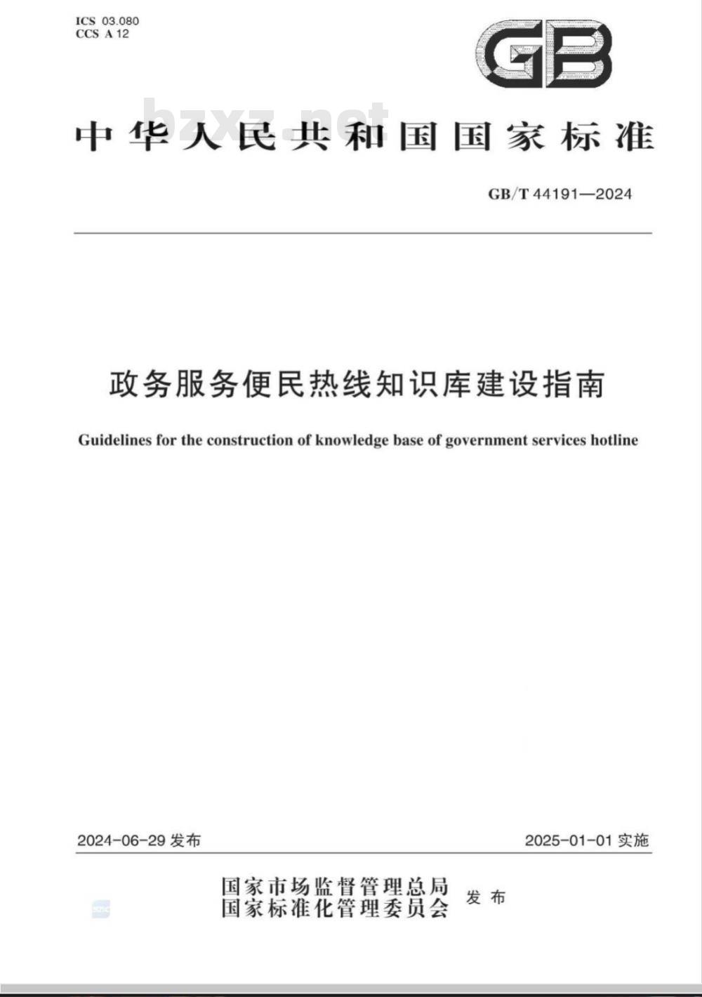 - GB/T 44191-2024政务服务便民热线知识库建设指南