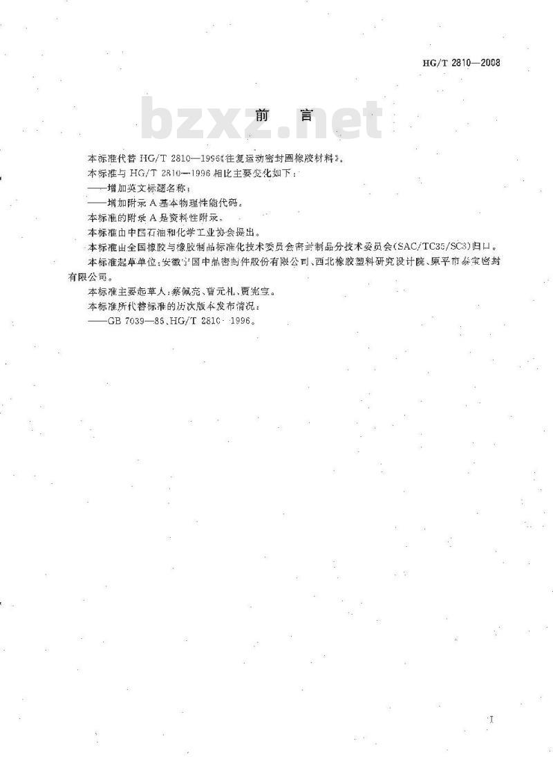 - HG/T 2810-2008 往复运动橡胶密封圈材料
