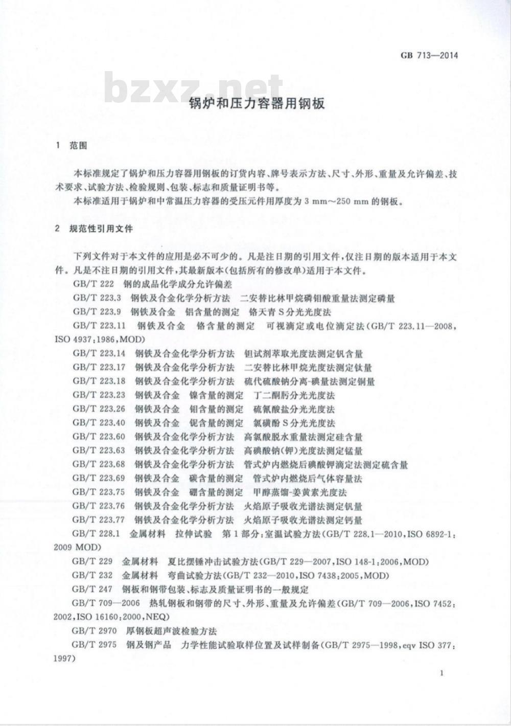 本标准适用于锅炉和中常温压力容器的受压元件用厚度为3mm~250mm 的钢板。