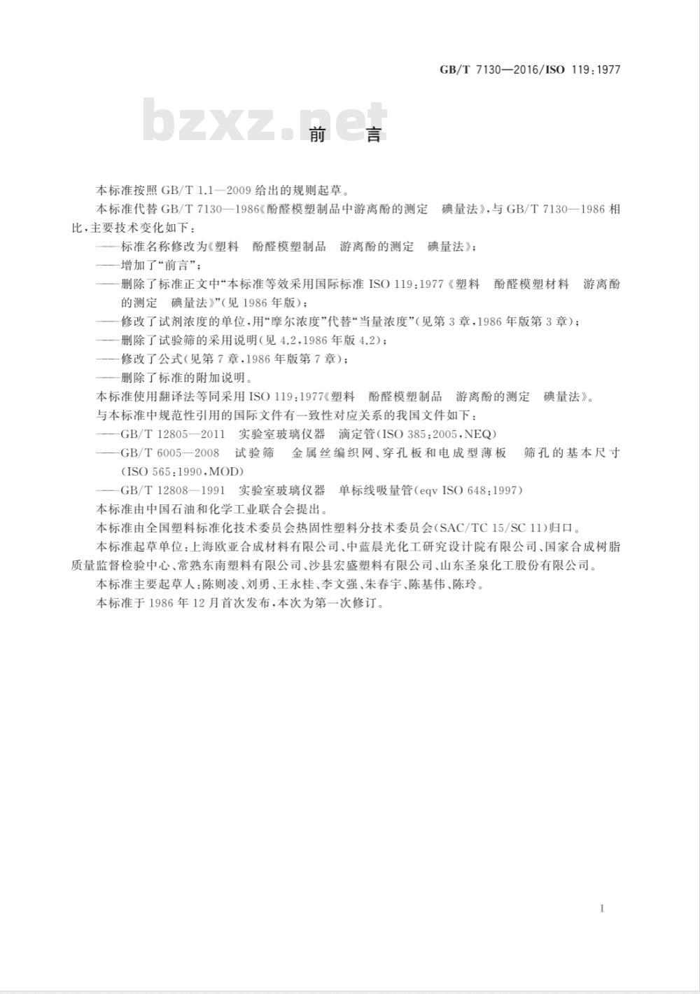 - GB/T 7130-2016塑料 酚醛模塑制品 游离酚的测定 碘量法
