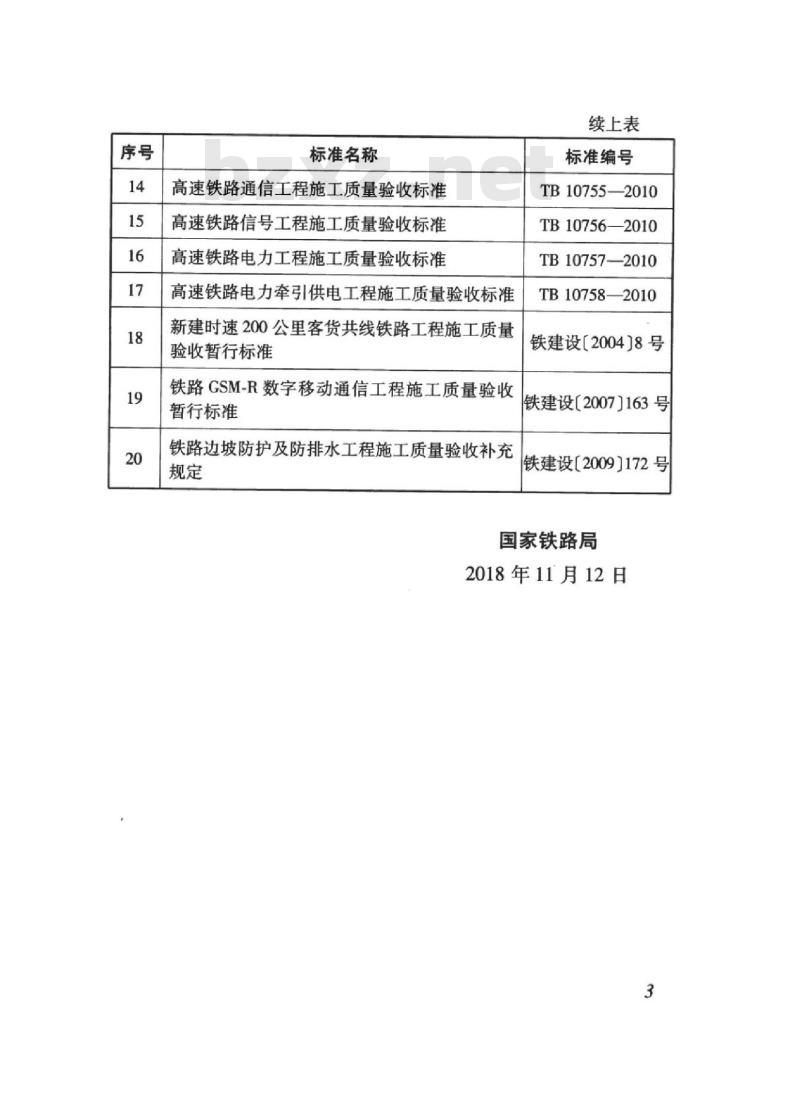 高速铁路桥涵工程施工质量验收标准高速铁路隧道工程施工质量验收标准高速铁路轨道工程施工质量验收标准高速铁路通信工程施工质量验收标准高速铁路信号工程施工质量验收标准高速铁路电力工程施工质量验收标准高速铁路电力牵引供电工程施工质量验收标准附表2废止标准目录