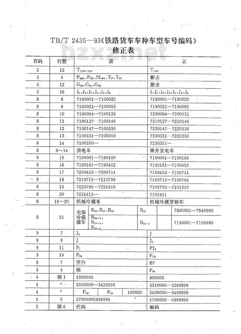 TB/T2435一93《铁路货车车种车型车号编码》修正表