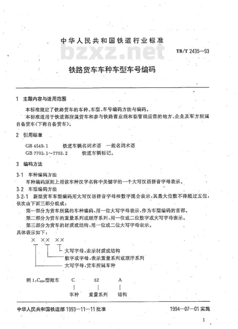 - TB/T 2435-93 铁路货车车种车型车号编码