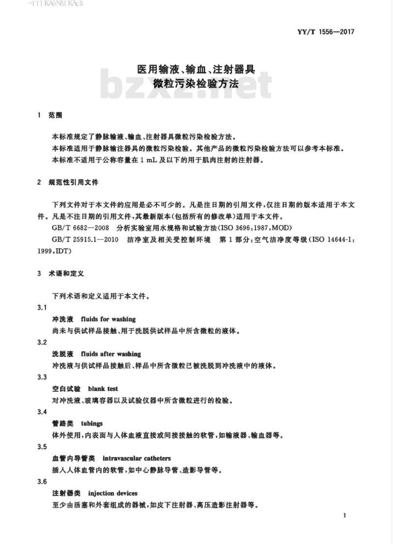 - YY/T 1556-2017 医用输液、输血、注射器具微粒污染检验方法