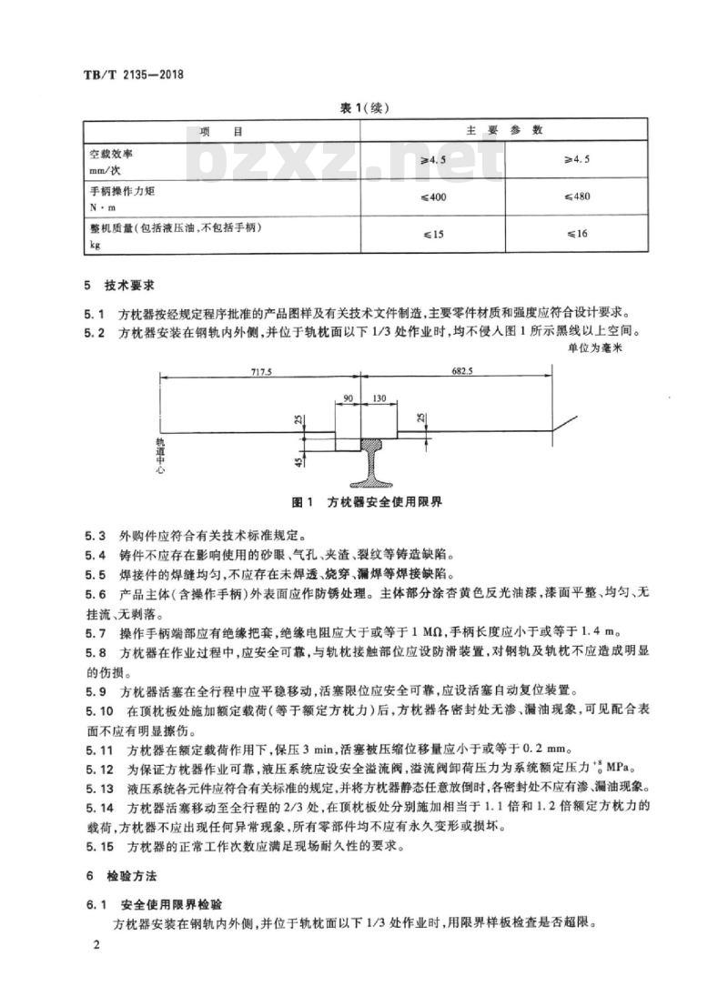 TB/T 2135适用于铁路有砟轨道作业用的液压方枕器(以下简称方枕器)。