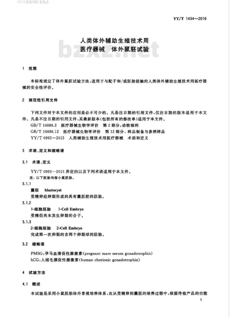 - YY/T 1434-2016 人类体外辅助生殖技术用医疗器械体外鼠胚试验