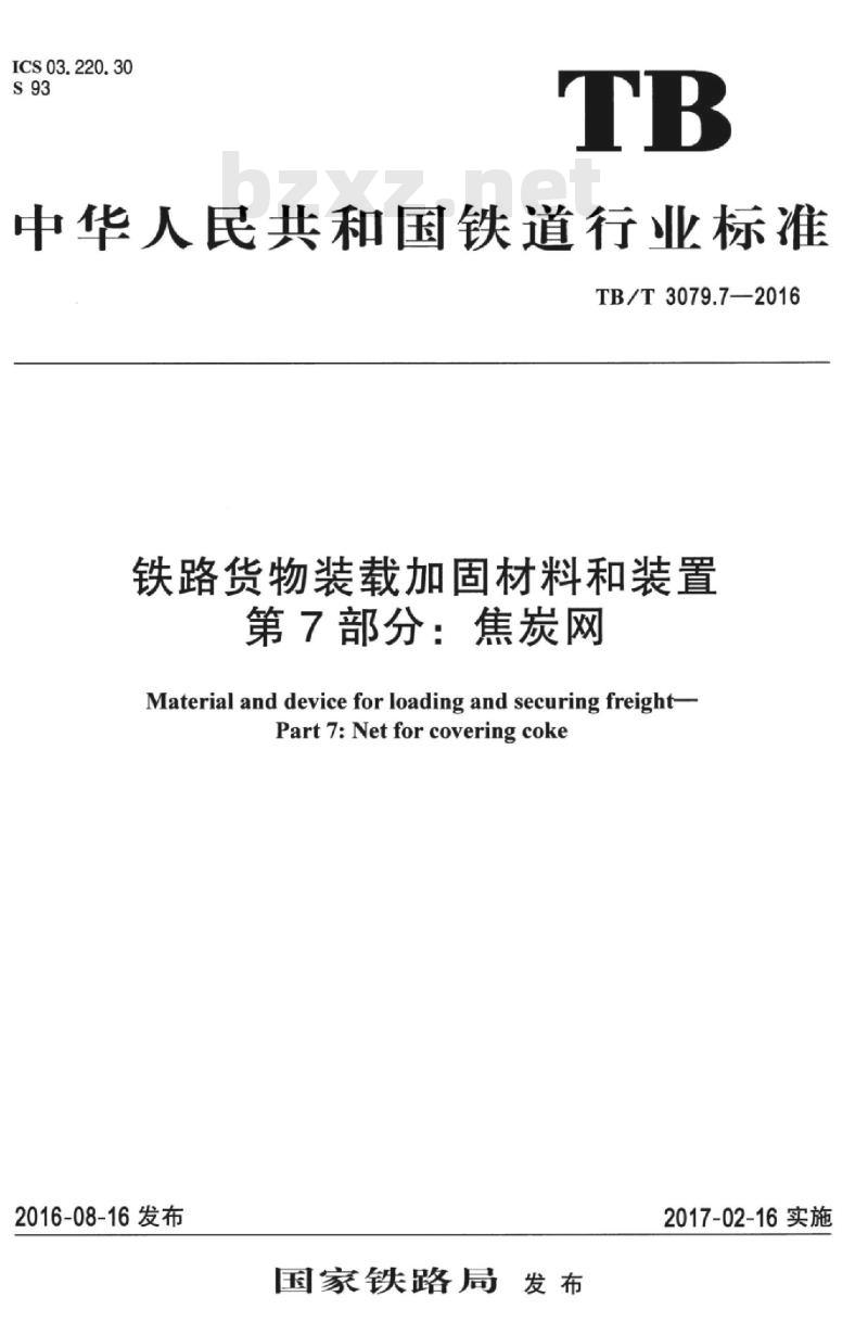 - TB/T 3079.7-2016 铁路货物装载加固材料和装置第7部分:焦炭网