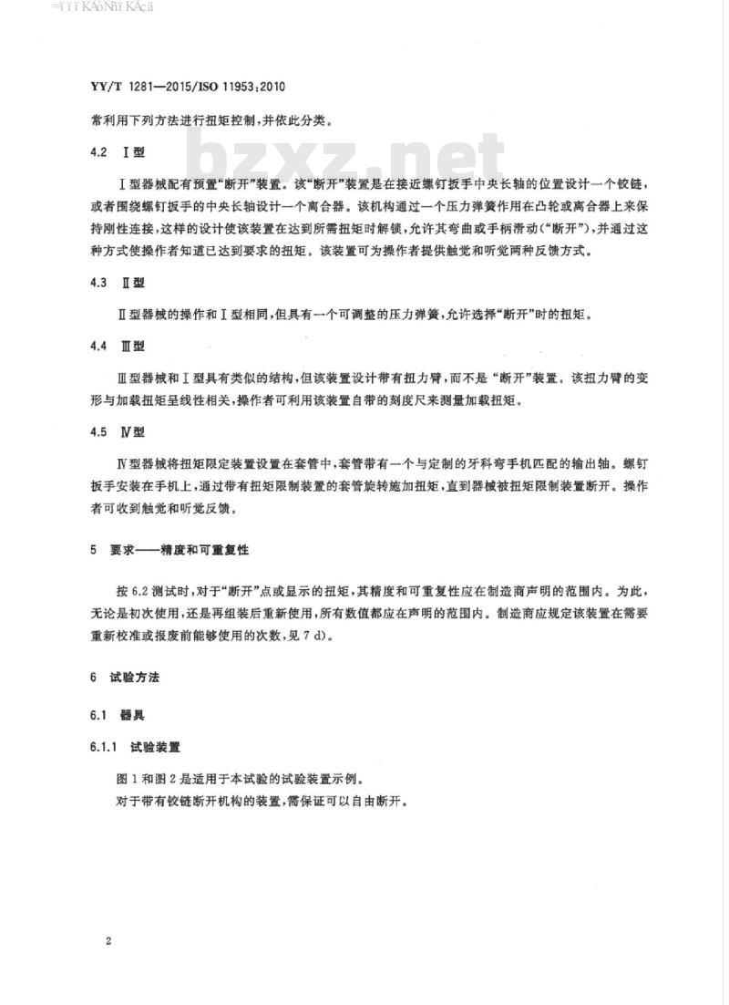 YY/T1281—2015/IS011953:2010常利用下列方法进行扭矩控制,并依此分类。4.2I型