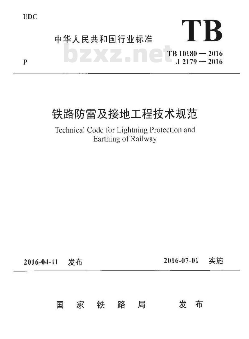 TB 10180-2016.Technical Code for Lightning Protection and Earthing of Railway.