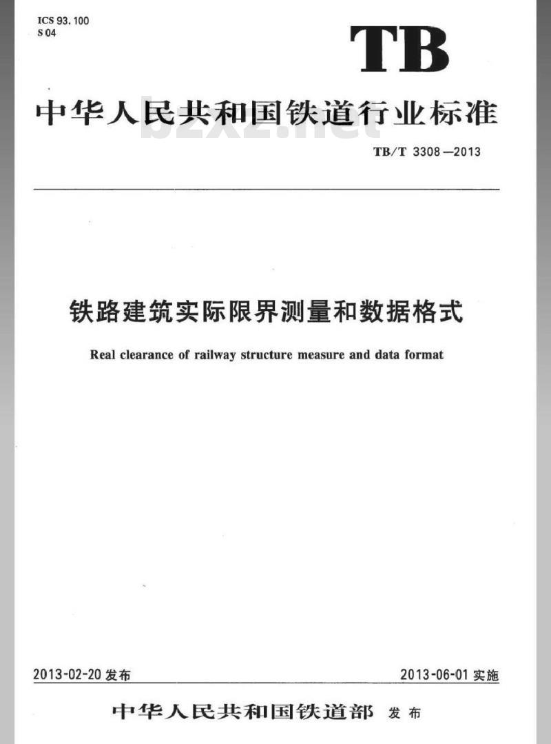 - TB/T 3308-2013 铁路建筑实际限界测量和数据格式