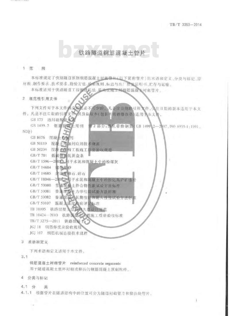 TB/T 3353适用于铁路隧道工程掘进机法,盾构张施工用钢筋混凝士衬砌管片。