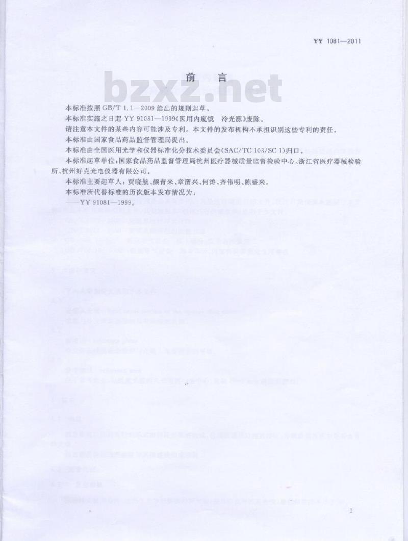 本标准按照GB/T1.12009给出的规则起草。本标准实施之日起YY91081-1999《医用内窥镜冷光源》废除