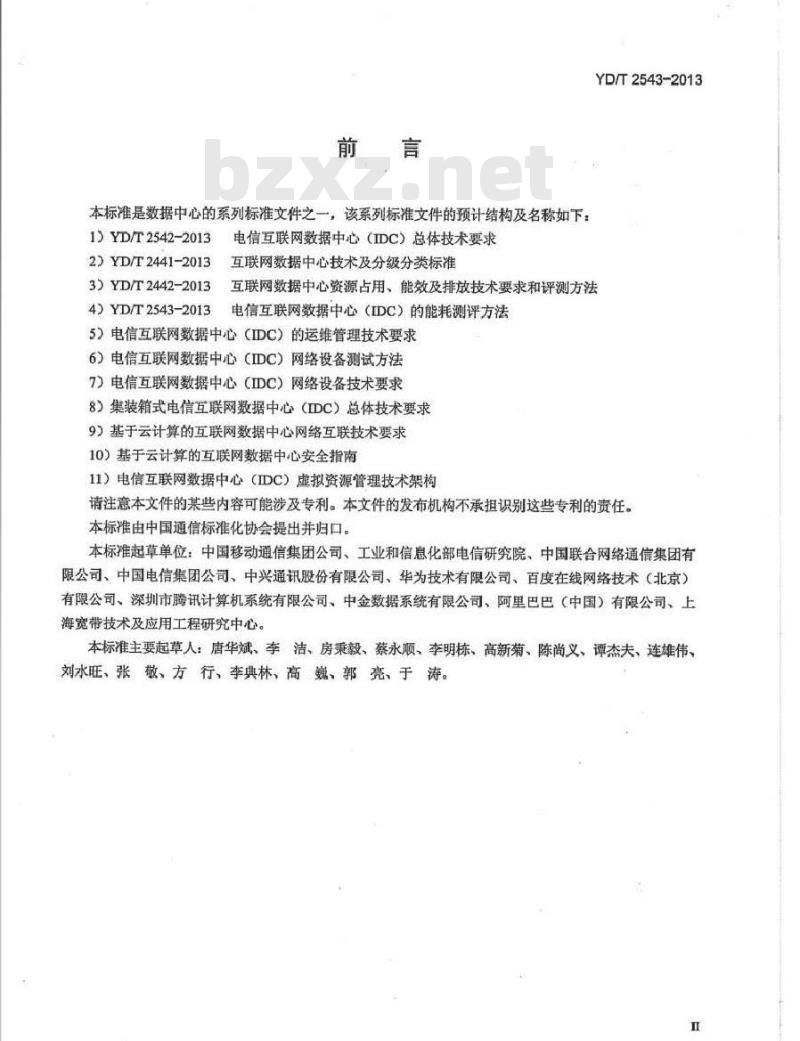 本标准是数据中心的系列标准文件之一,该系列标准文件的预计结构及名称如下1)YD/T2542-2013
