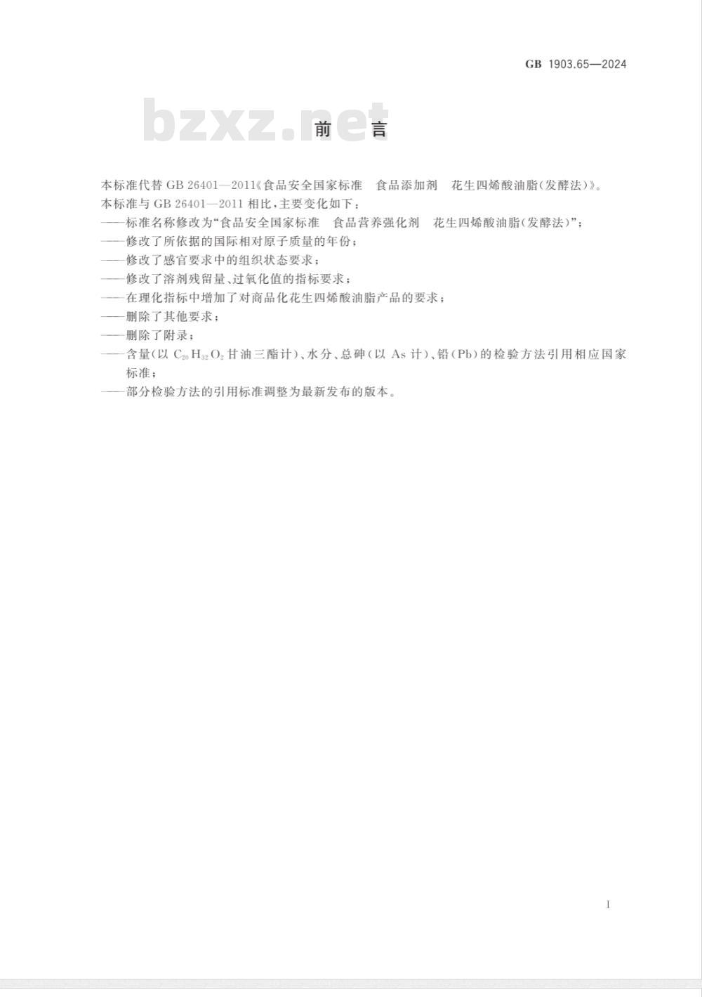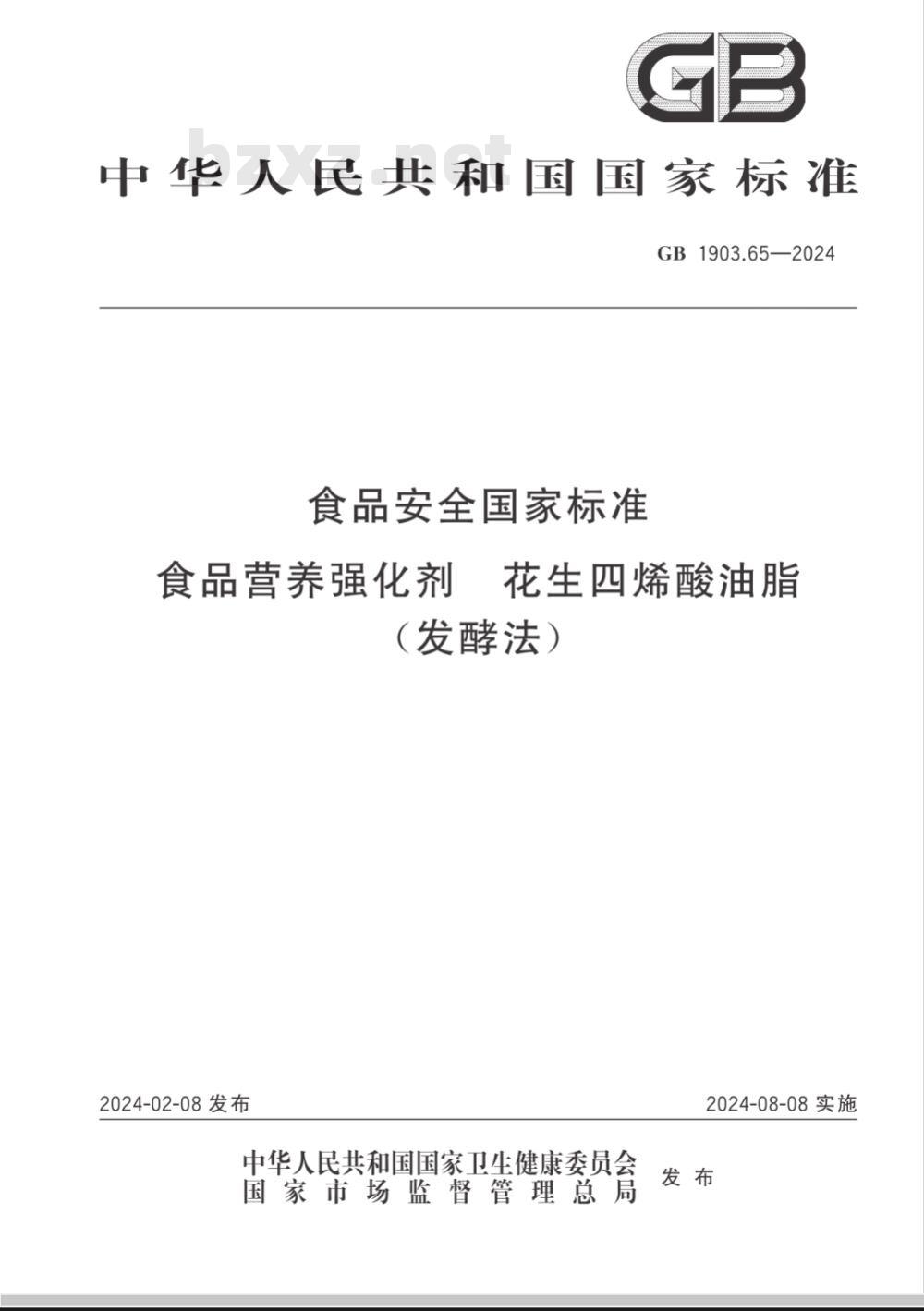 - GB 1903.65-2024食品安全国家标准 食品营养强化剂 花生四烯酸油脂(发酵法)