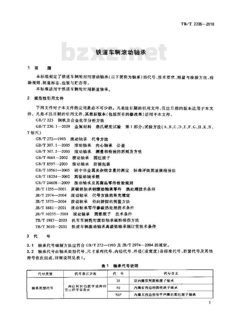 - TB/T 2235-2010 铁道车辆滚动轴承