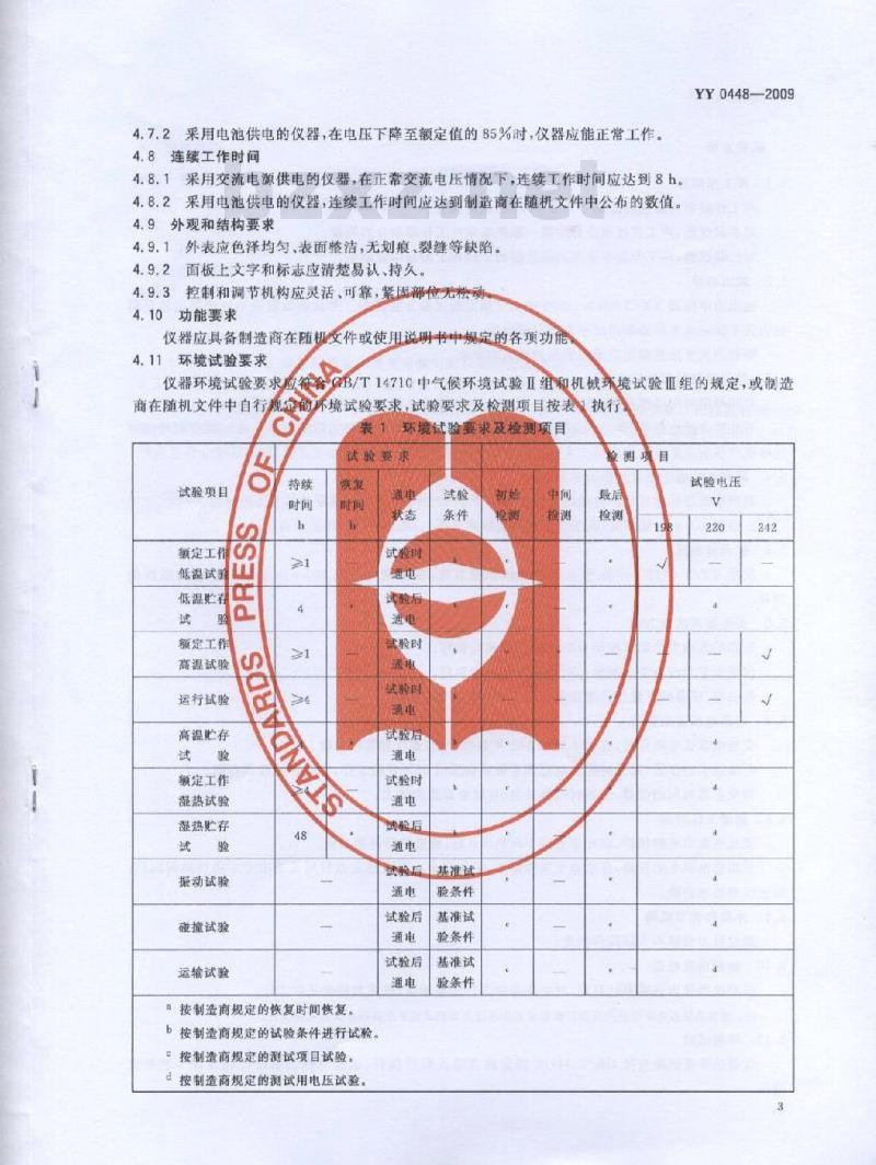 仪器的通用安全要求按照GB9706.1的规定执行。仪器的专用安全要求按照GB9706.9的规定执行。若适用,仪器的声输出公布按照GB/T16846的规定执行。5.7电源电压适应能力