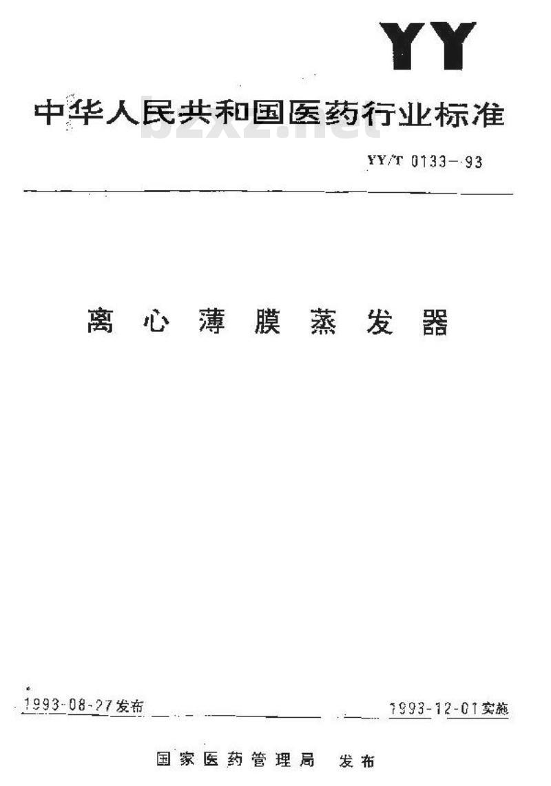 - YY/T 0133-1993 离心薄膜蒸发器