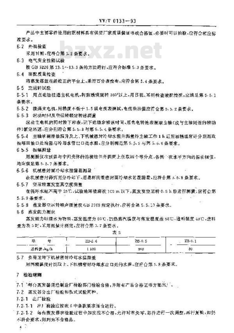一产品类日代号,表示蒸发设新类ZB2.6型,表示传效而积为2.6m2内高心薄膜蒸发器。4.3蒸发器革本整数,见表1,