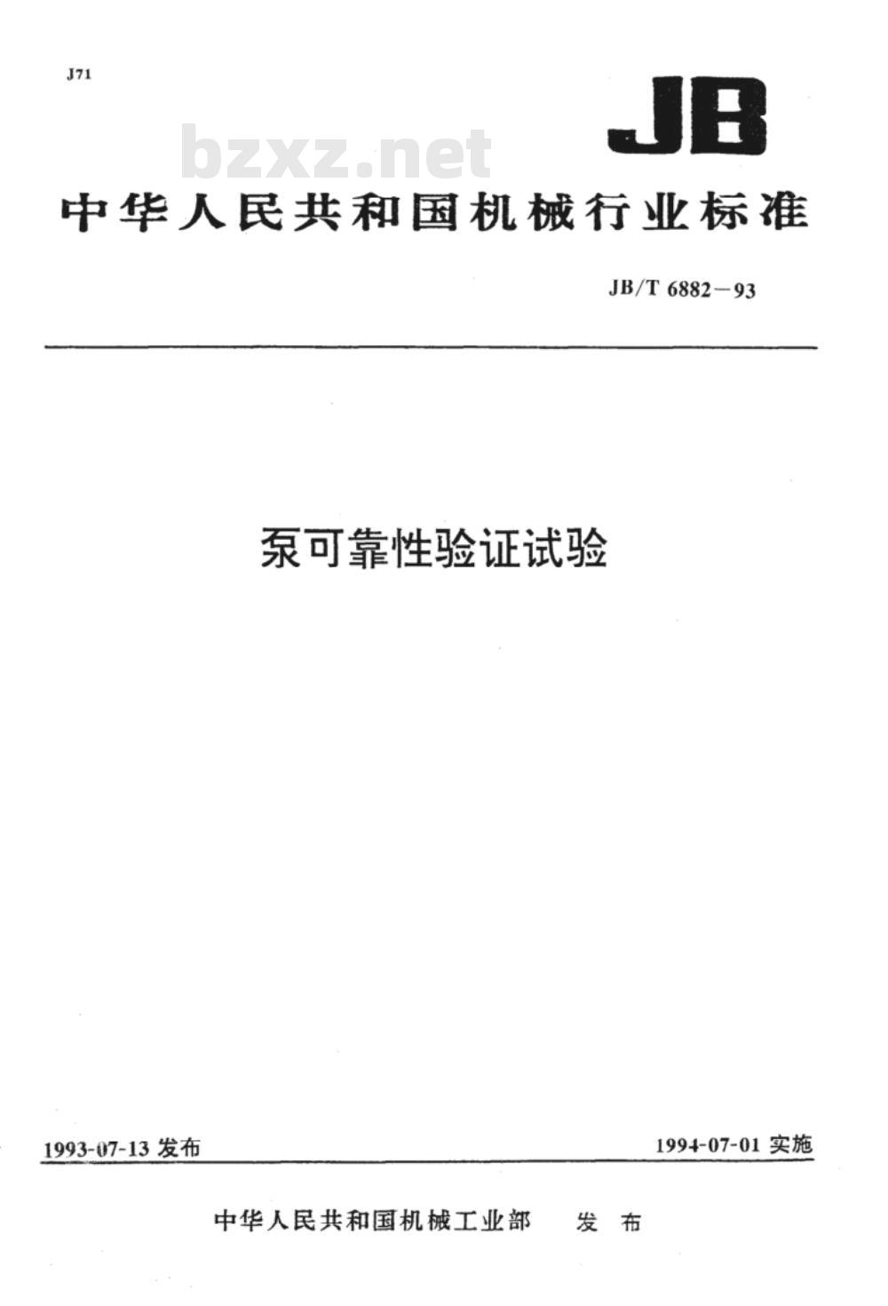 - JB/T 6882-1993 泵可靠性验证试验