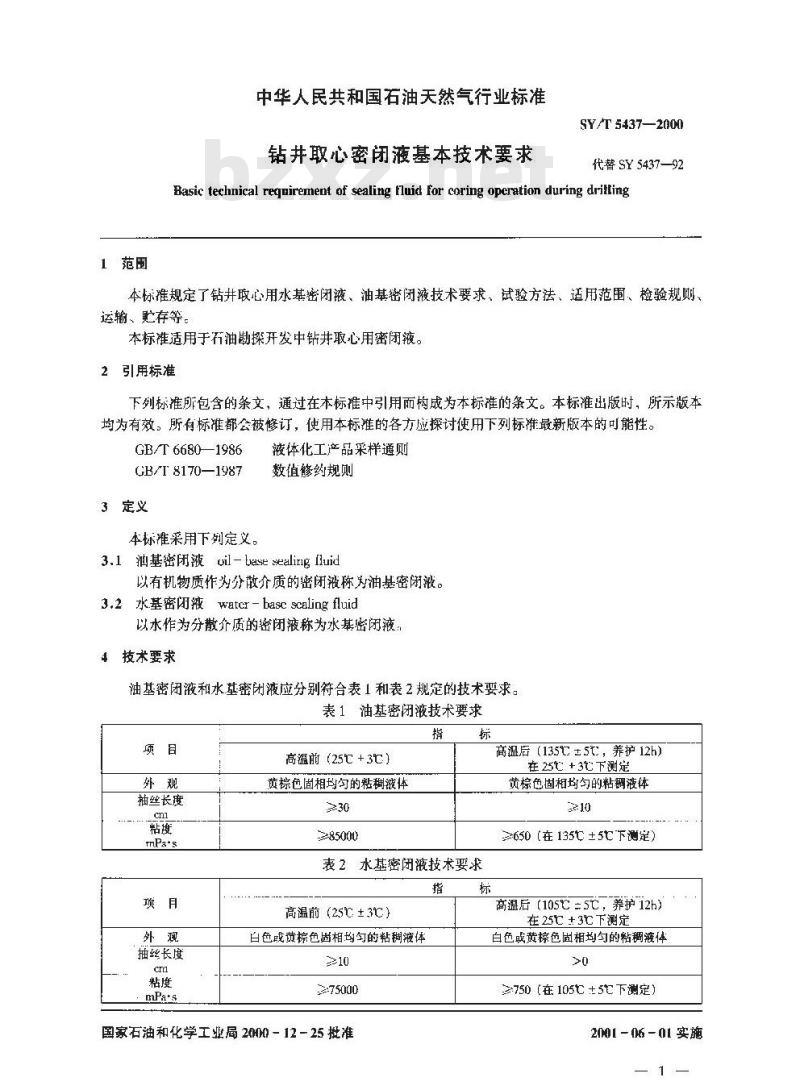 - SY/T 5437-2000 钻井取心密闭液基本技术要求