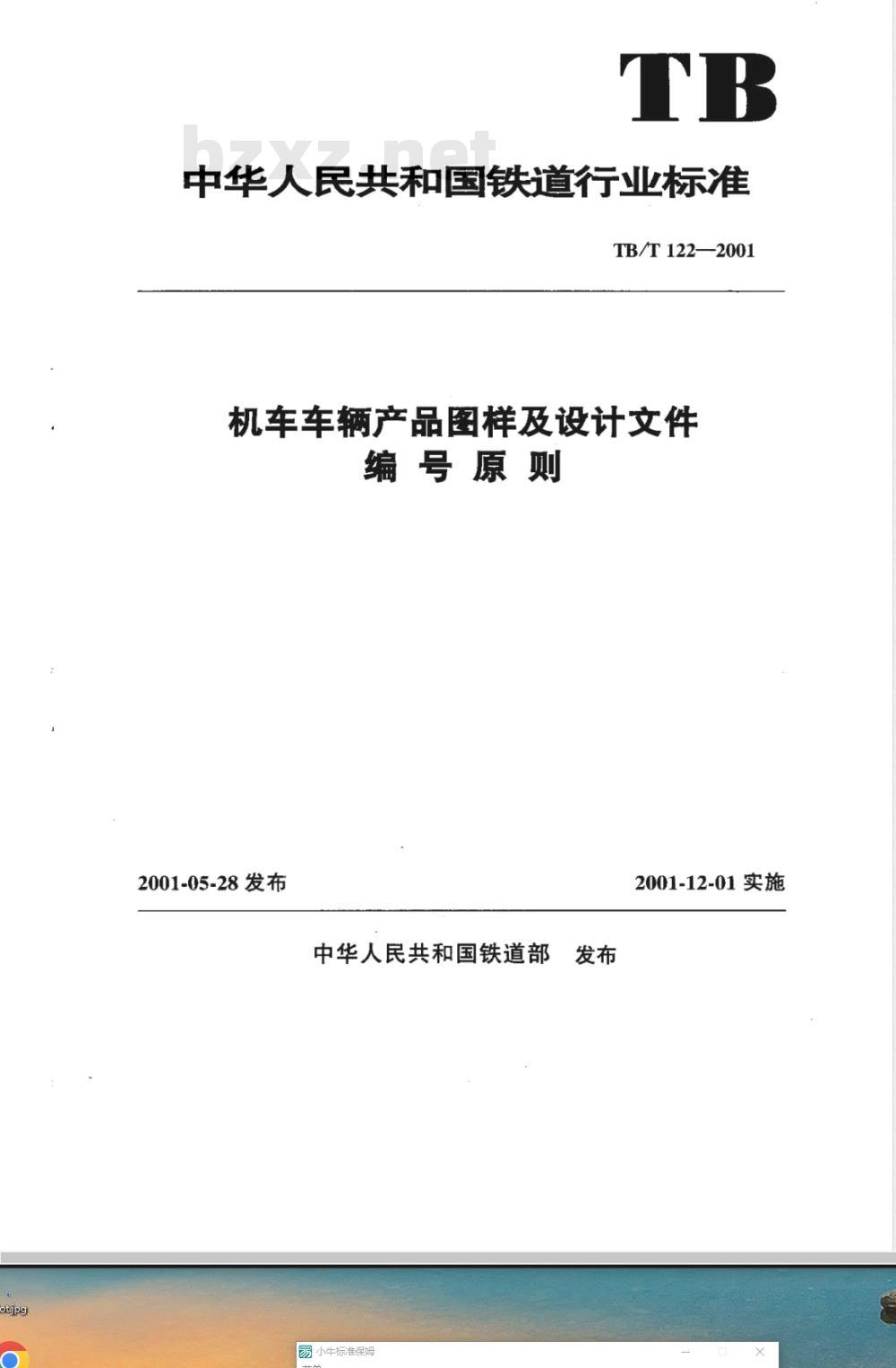 - TB/T 122-2001 机车车辆产品图样及设计文件编号原则