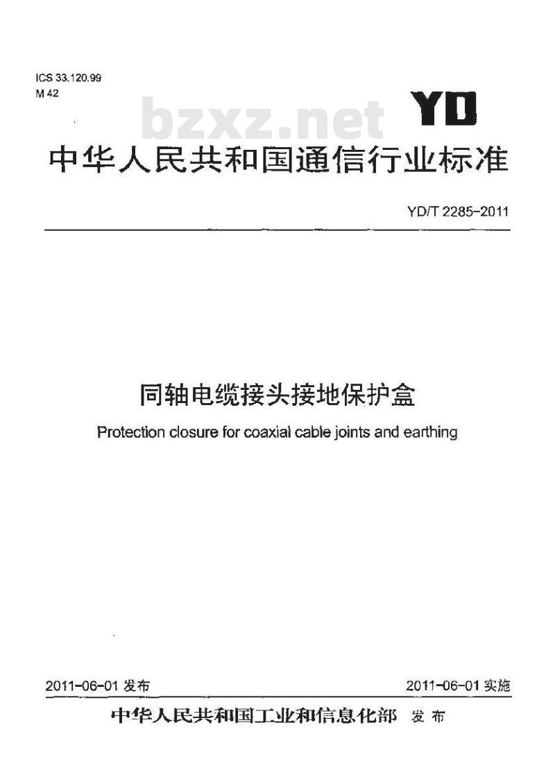 - YD/T 2285-2011 同轴电缆接头接地保护盒