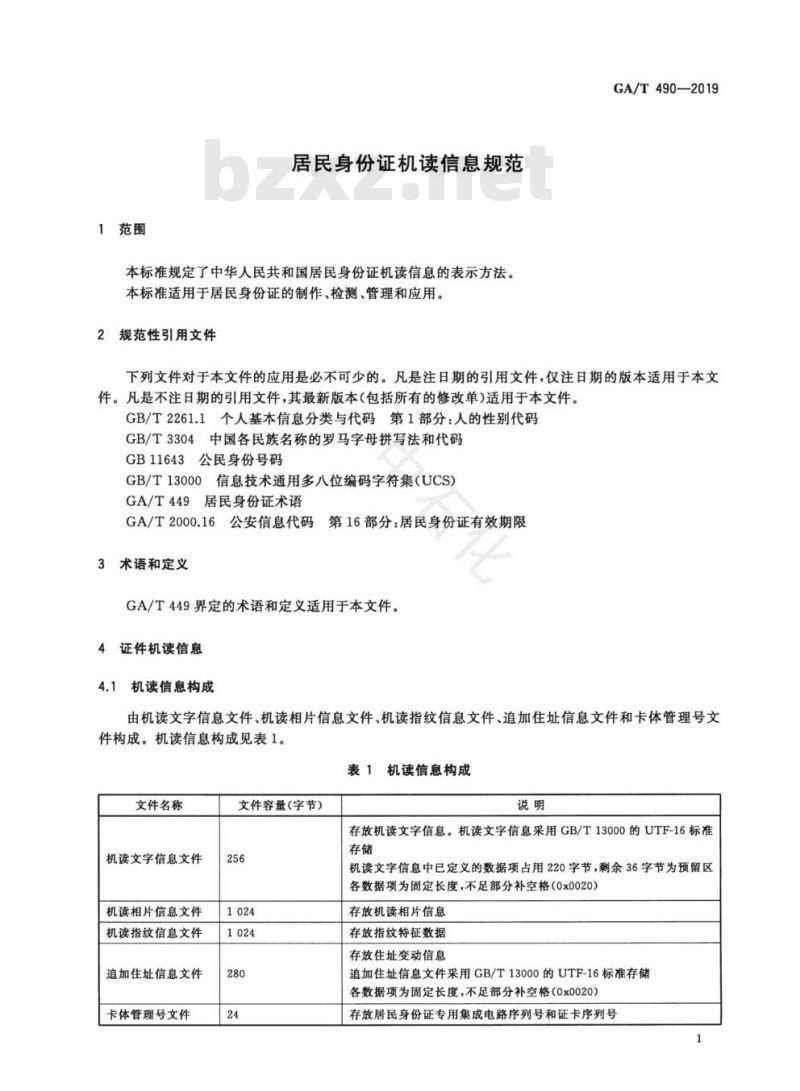 - GA/T 490-2019 居民身份证机读信息规范