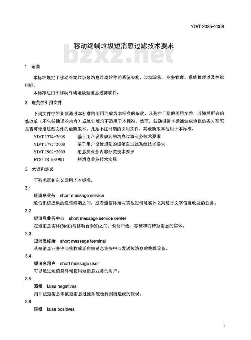 YD/T 2035规定了移动终端垃圾短消息过滤软件的系统架构、过滤流程、业务管理、系统管理以及性能指标。