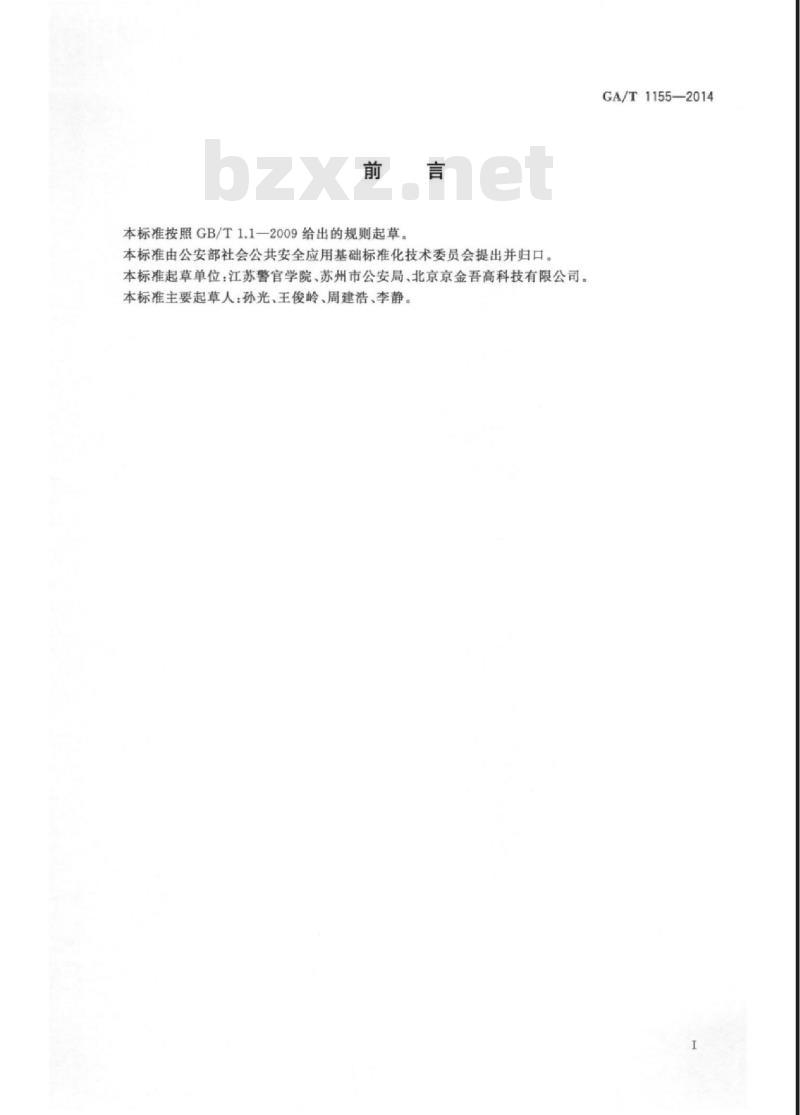 本标准按照GB/T1.1—2009给出的规则起草本标准由公安部社会公共安全应用基础标准化技术委员会提出并归口。本标准起草单位:江苏警官学院、苏州市公安局、北京京金吾高科技有限公司。本标准主要起草人:孙光、王俊岭、周建浩、李静。GA/T1155—2014