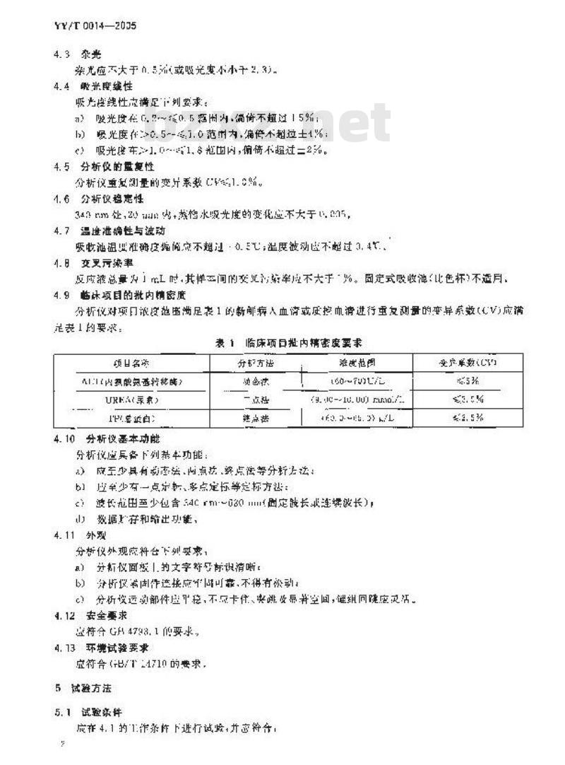 YY/T 0014适用于以紫外-可见分光光度法对各种样品进行定量分析的半自动生化分析仪(以下简称分析仪)。