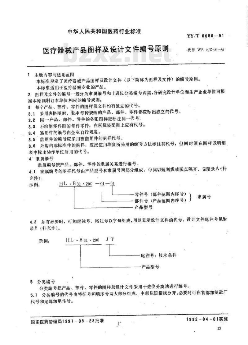 - YY/T 0050-91 医疗器械产品图样及设计文件编号原则