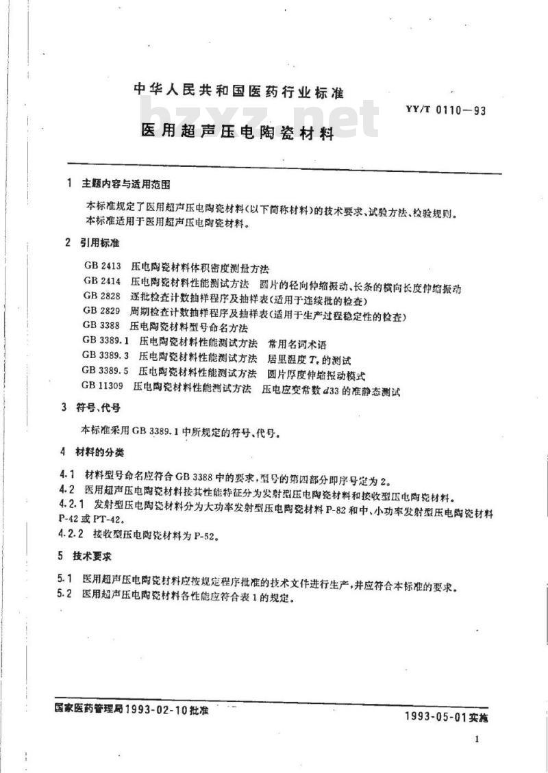 - YY/T 0110-1993 医用超声压电陶瓷材料