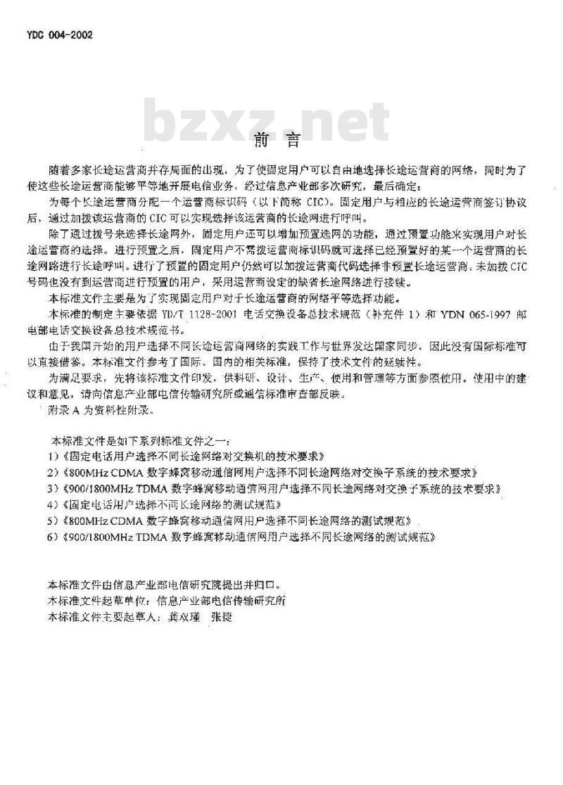 - YDC 004-2002 固定电话用户选择不同长途网络对交换机的技术要求