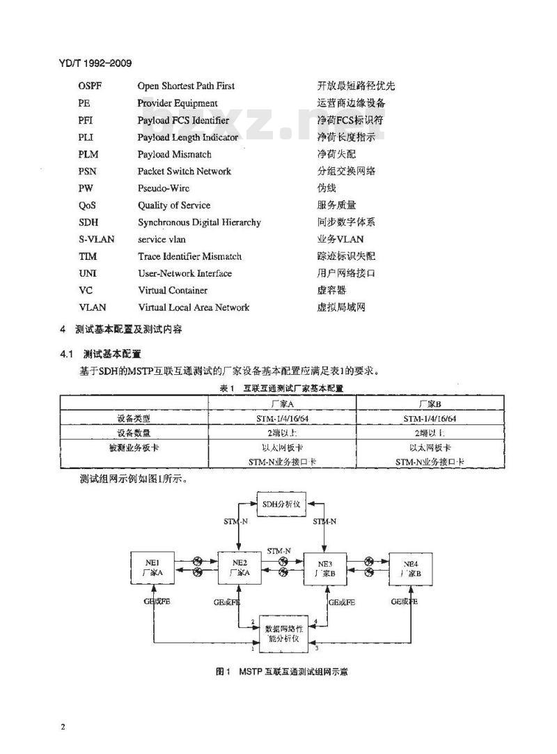 - YD/T 1992-2009 基于同步数字体系(SDH)的多业务传送节点(MSTP)测试方法互联互通部分