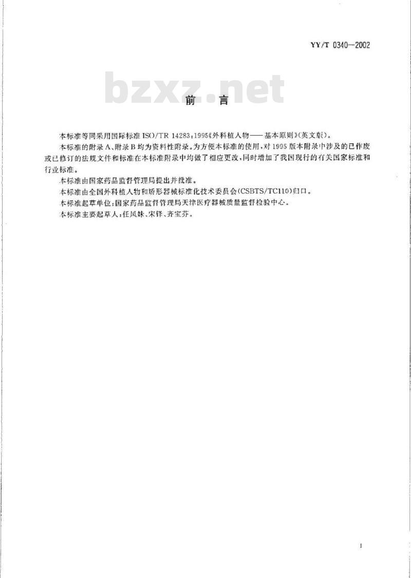 本标准等同采用国际标准IS0/TR14283:1995《外科植人物一基本原则》(英文版)。本标准的附录A、附录B均为资料性附录。为方便本标准的使用,对1995版本附录中涉及的已作废或已修订的法规文件和标准在本标准附录中均做了相应更改,同时增加了我国现行的有关国家标准和行业标准。