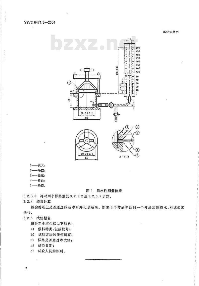 - YY/T 0471.3-2004 接触性创面敷料试验方法 第3部分:阻水性
