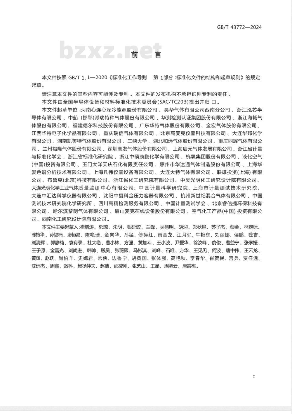 请注意本文件的某些内容可能涉及专利。本文件的发布机构不承担识别专利的责任。本文件由全国半导体设备和材料标准化技术委员会(SAC/TC203)提出并归口。本文件起草单位:河南心连心深冷能源股份有限公司、昊华气体有限公司西南分公司、浙江泓芯半导体有限公司、中船(邯郸)派瑞特种气体股份有限公司、华测检测认证集团股份有限公司、浙江海畅气体股份有限公司、福建德尔科技股份有限公司、广东华特气体股份有限公司、金宏气体股份有限公司、江西华特电子化学品有限公司、重庆瑞信气体有限公司、北京高麦克仪器科技有限公司、大连华邦化学有限公司、湖南凯美特气体股份有限公司、三峡大学、湖北和远气体股份有限公司、重庆同辉气体有限公司、兰州裕隆气体股份有限公司、深圳高发气体股份有限公司、上海启元气体发展有限公司、浙江省计量与标准化学会、浙江省标准化研究院、浙江中硝康鹏化学有限公司、杭氧集团股份有限公司、液化空气(中国)投资有限公司、玉门大洋天庆石化有限责任公司、惠州市华达通气体制造股份有限公司、上海华爱色谱分析技术有限公司、上海凡伟仪器设备有限公司、大连大特气体有限公司、联雄投资(上海)有限公司、布鲁克(北京)科技有限公司、浙江省化工研究院有限公司、中昊光明化工研究设计院有限公司、大连光明化学工业气体质量监测中心有限公司、中国计量科学研究院、上海市计量测试技术研究院、大连中汇达科学仪器有限公司、沈阳中复科金压力容器有限公司、杭州新世纪混合气体有限公司、中国测试技术研究院化学研究所、四川高精检测服务有限公司、中国计量测试学会、北京睿信捷环保科技有限公司、哈尔滨黎明气体有限公司、眉山麦克在线设备股份有限公司、空气化工产品(中国)投资有限公司、西南化工研究设计院有限公司。本文件主要起草人崔增涛、郭琼、朱明、银延蛟、兰锋、吴慧明、胡迎、郑秋艳、苏子杰、蔡金、林定标、陈施华、孙福楠、廖恒易、陈艳珊、金向华、孙猛、傅铸红、禹金龙、江月军、牛艳东、刘丽娜、侯鹏、钱吉、刘清辉、郭静楠、袁有录、杜大艳、曹小林、方强、黄加斗、王小波、尹爱华、徐汝峰、俞俊、曹益宁、张孛媛、王子源、金雪光、刘尚进、韩巾、殷昊、张薇薇、马彬淇、刘峰、石唯、方华、王见见、何波、唐中伟、王云龙、黄辉、赵跃、尚柏羊、史婉君、常侠、边鲁宁、胡树国、张体强、高艳秋、李春华、崔贺民、宫兵、贾任远、沈远杰、周鑫、敖科、杨扬仲夫、赵洁、邵成刚、张艺山、王晶、周鹏云、唐霞梅。I