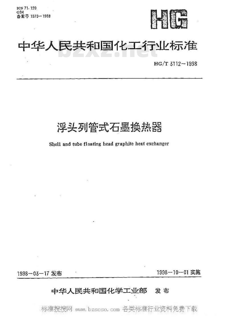 - HG/T 3112-1998 浮头列管式石墨换热器