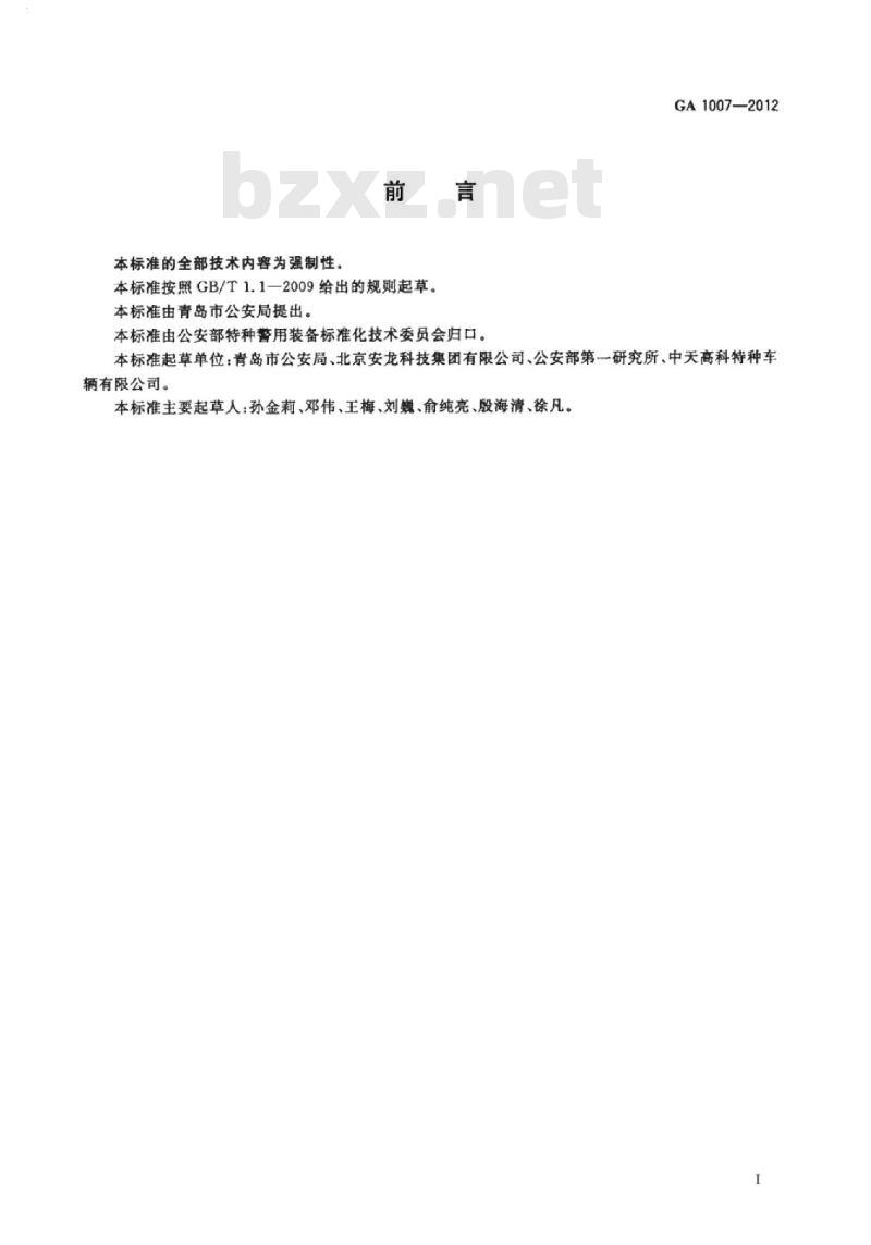本标准由公安部特种警用装备标准化技术委员会归口。GA1007—2012