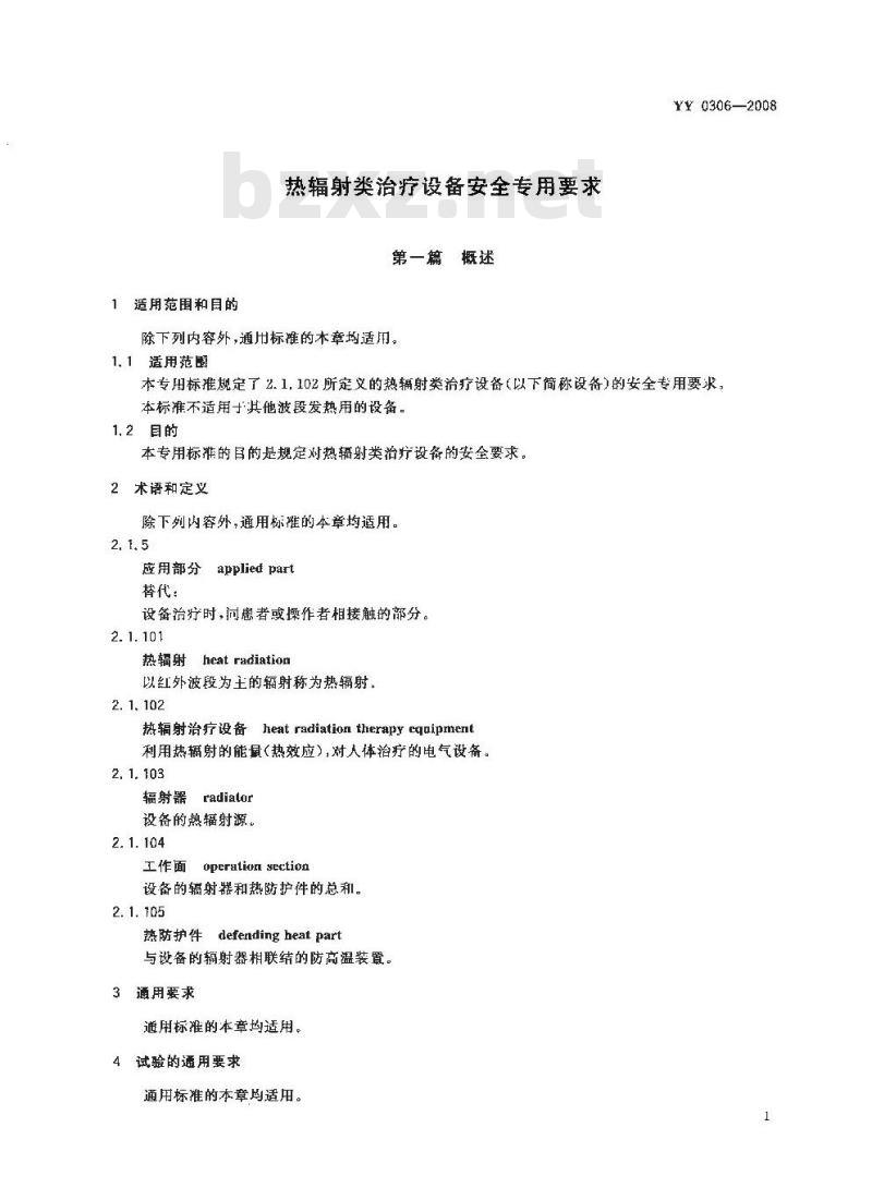 YY 0306规定了2.1.102所定义的热辐射类治疗设备(以下简称设备)的安全专用要求。