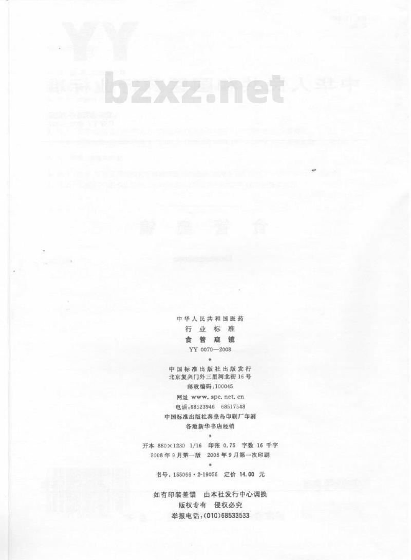 本标准代替YY0070—1992《食管窥镜》。本标准与YY0070—1992的差异如下:YY0070-2008