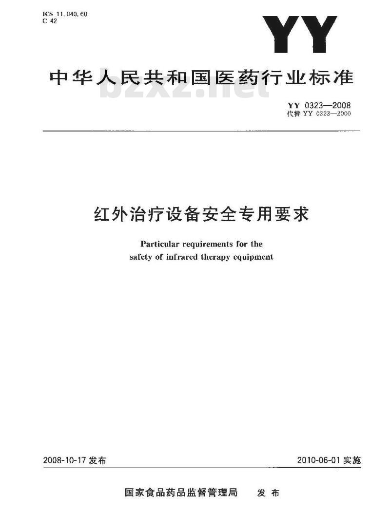 YY 0323-2008.Particular requirements for the safety of infrared therapy equipment.