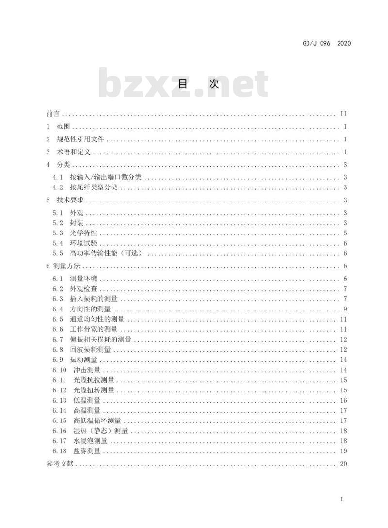 - GD/J 096-2020 光分路器技术要求和测量方法