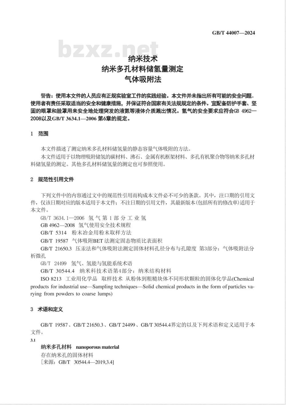 - GB/T 44007-2024纳米技术 纳米多孔材料储氢量测定 气体吸附法