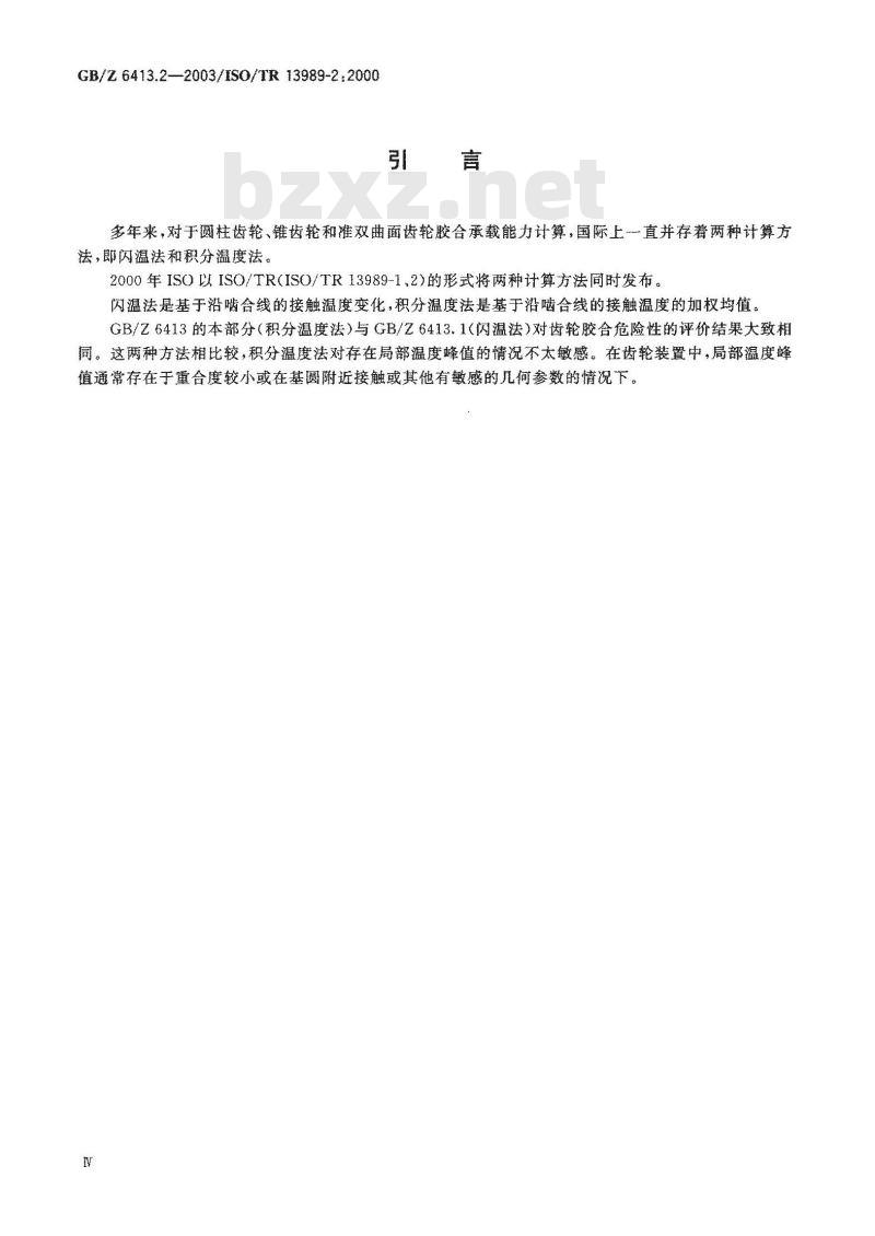 2000年IS0以IS0/TR(IS0/1R13989-1,2)的形式将两种计算法筒时发布。闪温法是基于沿啮合线的接触温度变化,积分温度法是基于沿啮合线的接触温度的加权均值。GB/Z6413的本部分(积分温度法)与GB/z6413.1(闪温法)对齿轮胶合危险性的评价结果大致相同。这两种方法相比较,积分温度法对存在局部温度峰值的情况不太缴慰。在齿轮装置中,局部温度峰值通常存在于重合度较小或在基圆附近接触或其他有敏感的几何参数的情况下。1范围