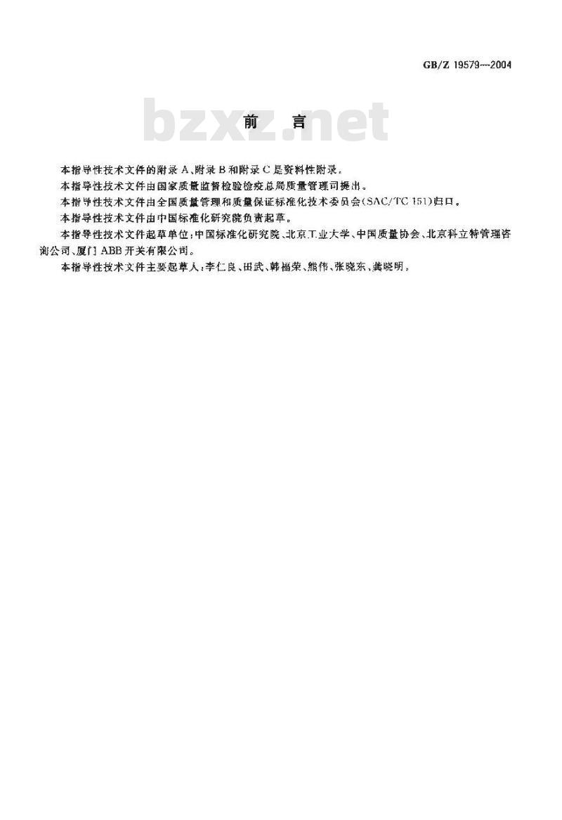 本指导性技术文件由全国质管理和质量保证标准化技术委员会(SAC/TC 151)归口。本指导性技术文件由中国标推化研究院负责起草。本指导性技术文件起草单位:中国标准化研究院、北京.工业大学、中国质盘协会、北京科立特管理咨谢公司、厦门ABB开关有限公司。本指导性技术文件主要起草人:李仁良、亞武、韩福荣、熊伟、张晓东,龚晓明。GB/Z19579—2004