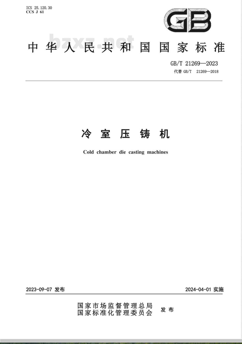 本文件代替GB/T21269一2018《冷室压铸机》,与GB/T21269一2018相比,除结构调整和编辑性改动外,主要技术变化如下: