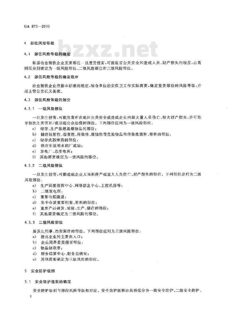 - GA 873-2010 冶金钢铁企业治安保卫重要部位风险等级和安全防护要求