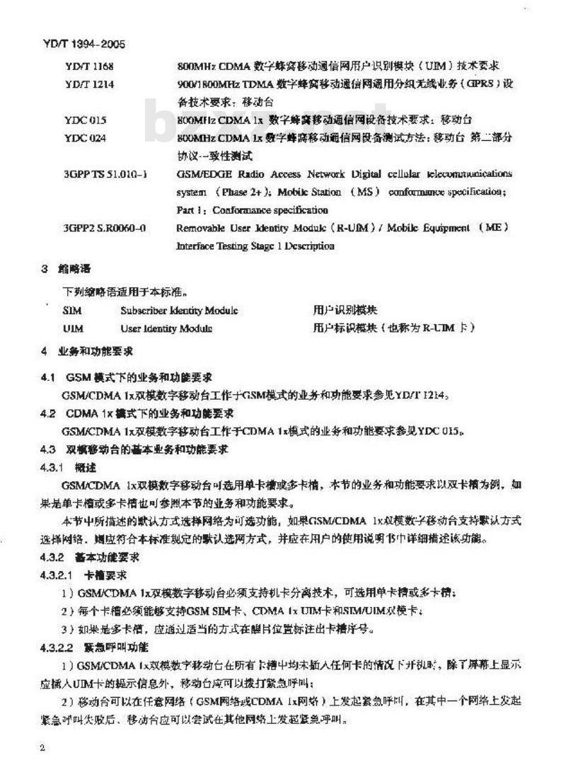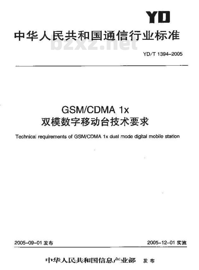 - YD/T 1394-2005 GSM/CDMA 1x 双模数字移动台技术要求