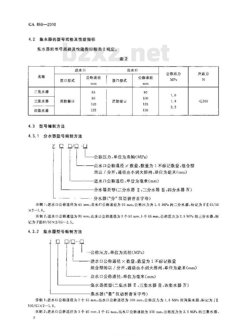 GA 868规定了分水器和集水器的术语和定义、性能和结构参数及型号编制方法性能要求、试验方法、检验规则以及标志、包装、储存和使用说明书。